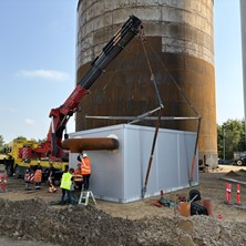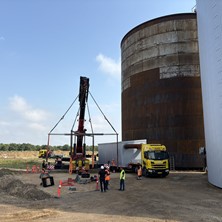 Måbjergværkets to nye akkumuleringstanke står nu i fuld højde.