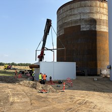 Efter planen kan vi tage akkumuleringstank nummer ét, som er blevet isoleret og beklædt, i brug senere på efteråret.