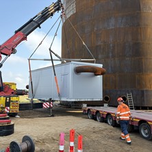 Det var en særdeles vigtig brik, vi forleden fik manøvreret ned foran vores to, store akkumuleringstanke.