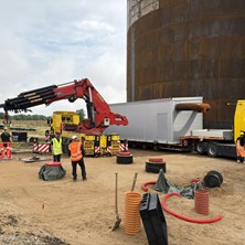 Måbjergværkets to nye akkumuleringstanke står nu i fuld højde.