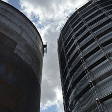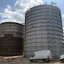 Stilladset skal dog ikke langt. Blot nogle få meter over til tank to, som derefter også vil blive isoleret og beklædt i samme farve.