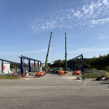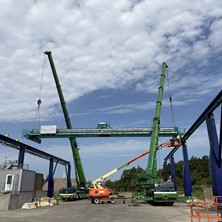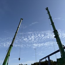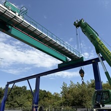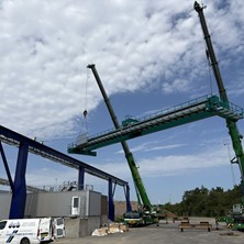 I videoen her kan du se, hvordan det gik til, da vi fik hejst lidt af en tværbjælke op på vores nye fliskran.