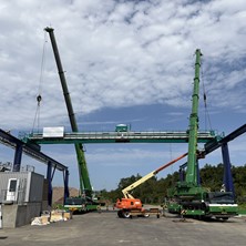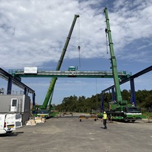 To store kraner samt kyndige kræfter skulle der til, men det var altså også en travers, som tværbjælken hedder, på hele 36 tons, der skulle op.