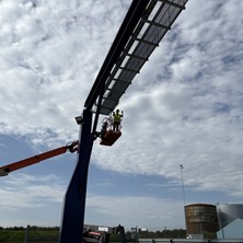 Traversen skal køre frem og tilbage i den bane, som er lavet på de søjler, den nu er monteret på.